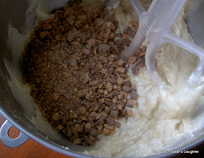 Did I say 1 cup of toffee chips? I guess I didn't really measure. I just added the rest of the bag (about half). Not too much of a good thing here.